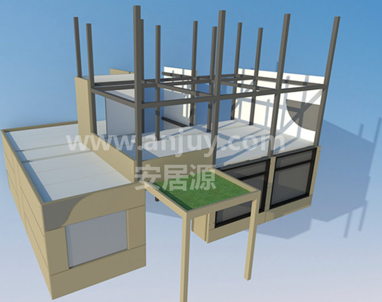 組裝房 - 特點1、材料環(huán)保,可回收利用;2、建設速度快,施工周期短;3、材料工廠化加工,現場裝配化施工,減少了施工對環(huán)境的影響,實現